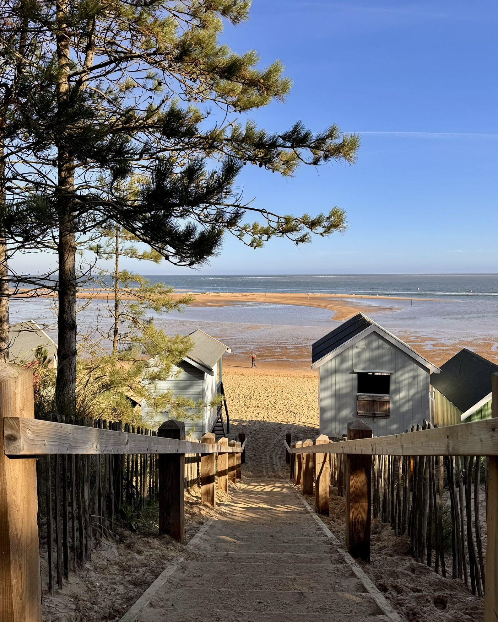 There are almost 200 beach huts on Wells Beach that stretch across the sands, with pine trees as a beautiful back drop.