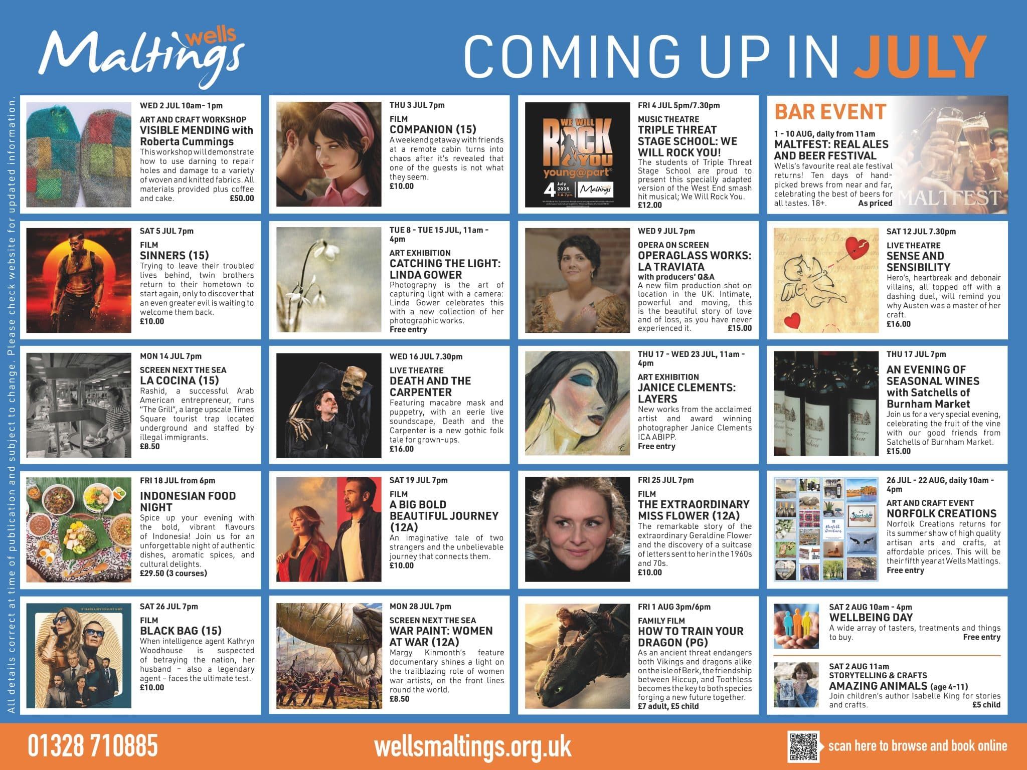 The Wells Maltings building is open 7 days a week from 10am to 4pm, with extended hours for evening events and performances.
